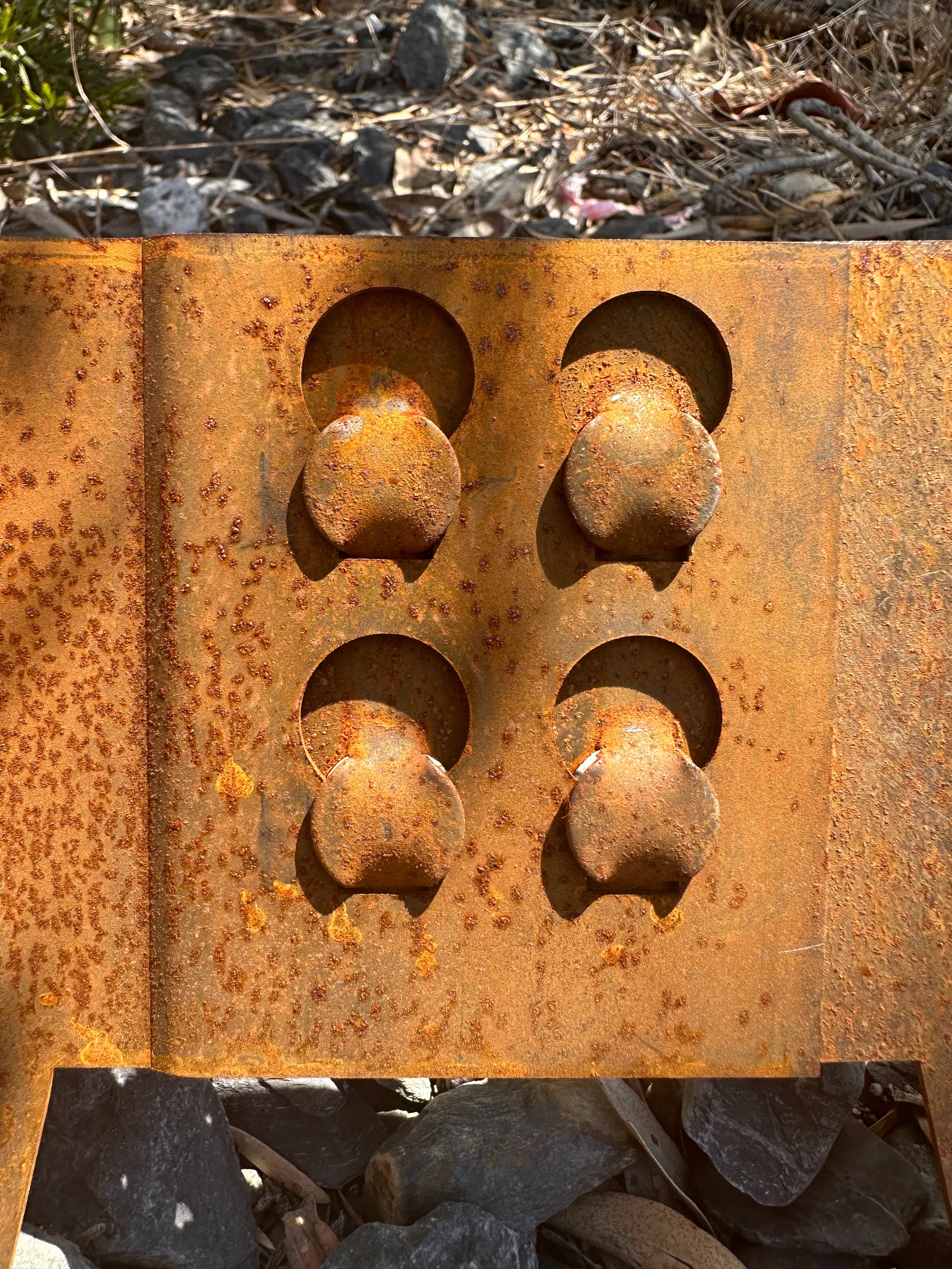 Weathering steel weathers best when it goes through cycles of being wet and then drying out. If it is left on its side in the rain or in water, pre installation, it can revert to its original steel colouring. It will weather again to its final red-brown rust colour, but ideally this should be avoided if possible.
